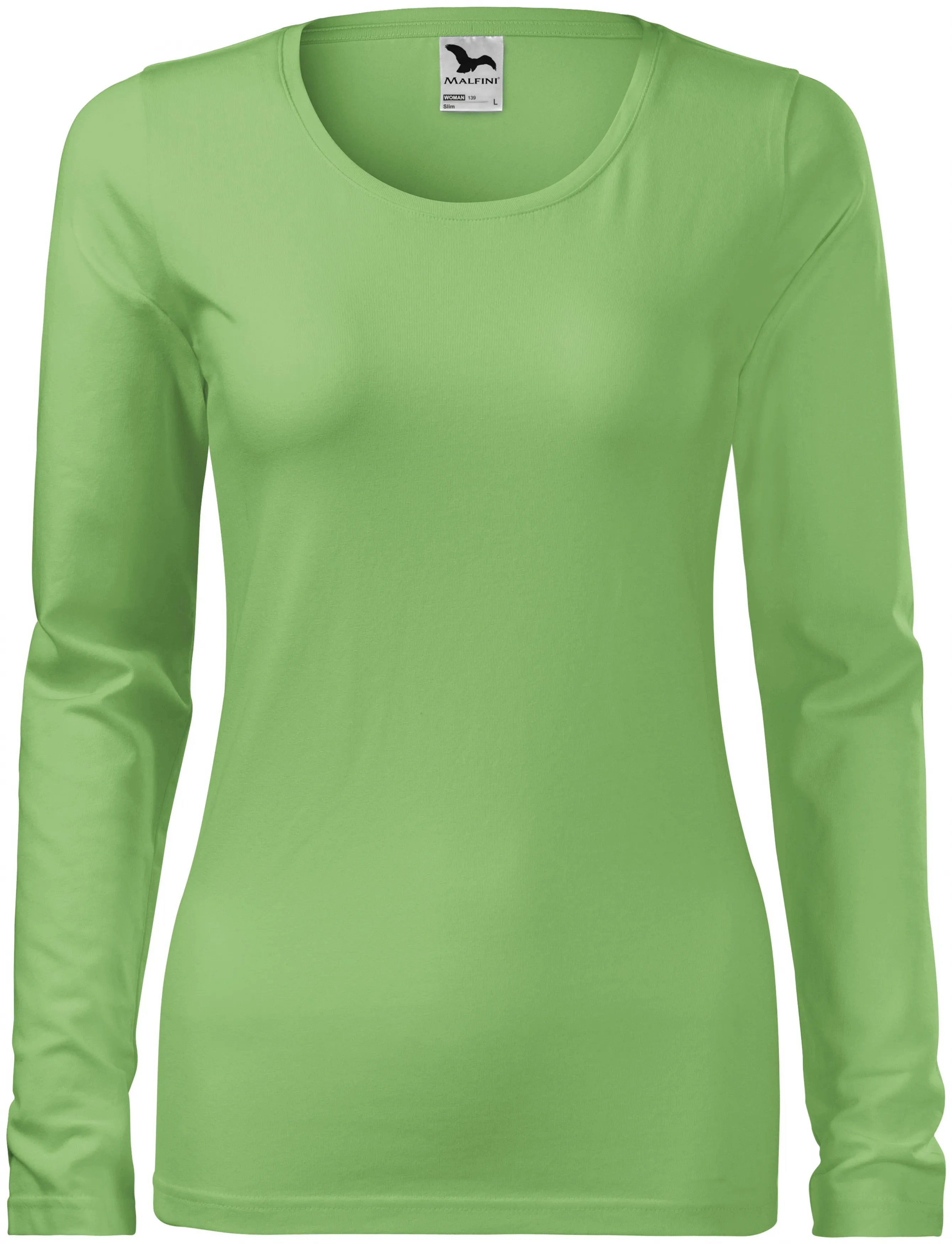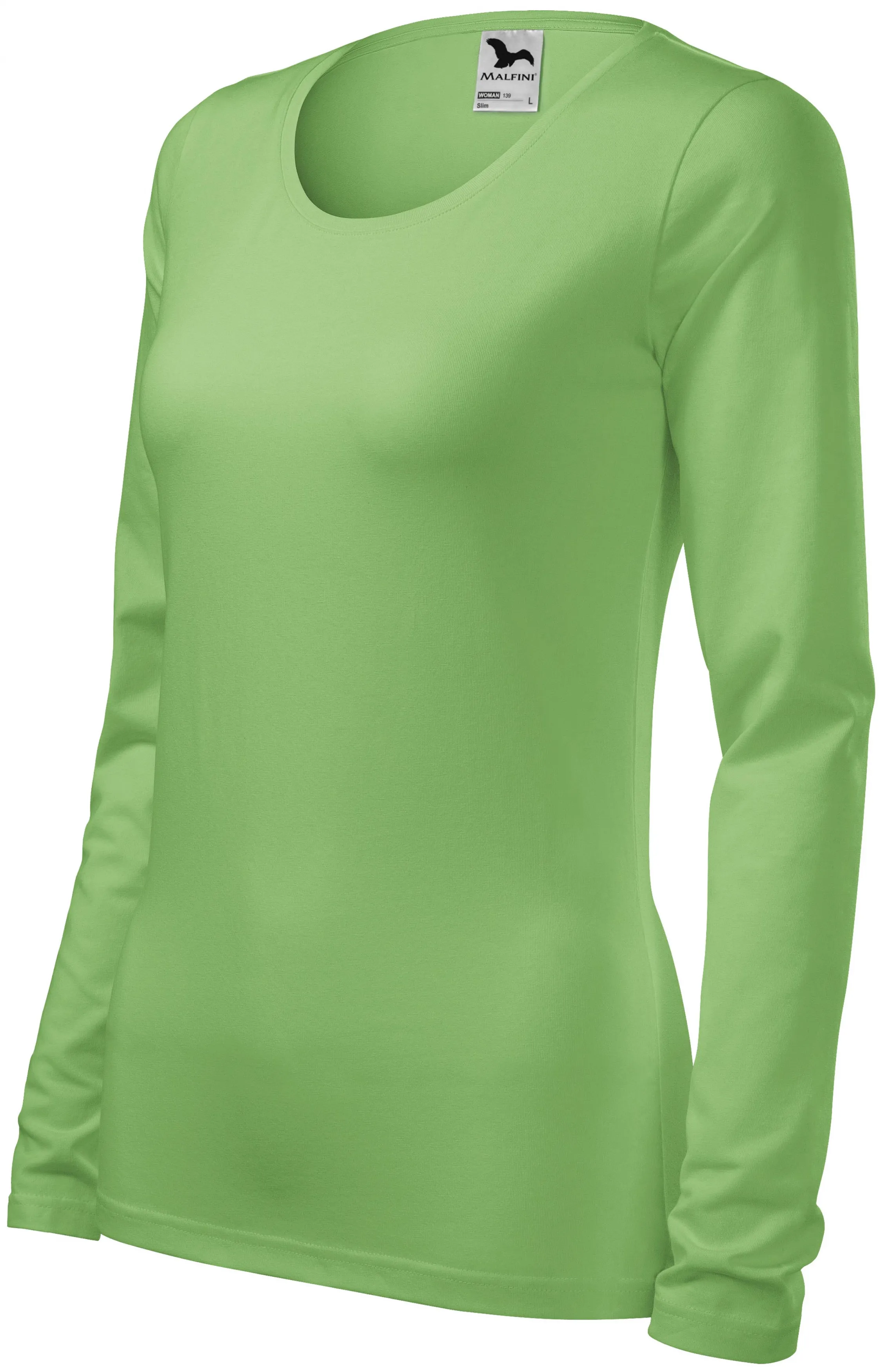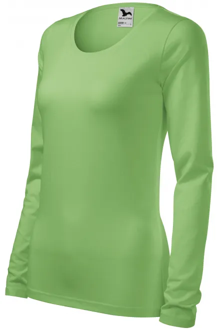 Dāmu piegulošs T-krekls ar garām piedurknēm, zirņu zaļš, S
