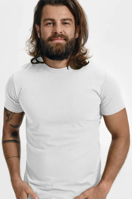 95% kokvilna, 5% elastāns • 180 g/m2 (GSM) • 10 krāsu • izmēri S līdz 2XL • Pāra koncepcija - pieejama saskaņota sieviešu versija
