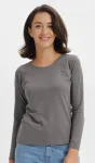Sieviešu T-krekls ar garām piedurknēm ir izgatavots no 100% kokvilnas, lai nodrošinātu maksimālu komfortu visas dienas garumā.