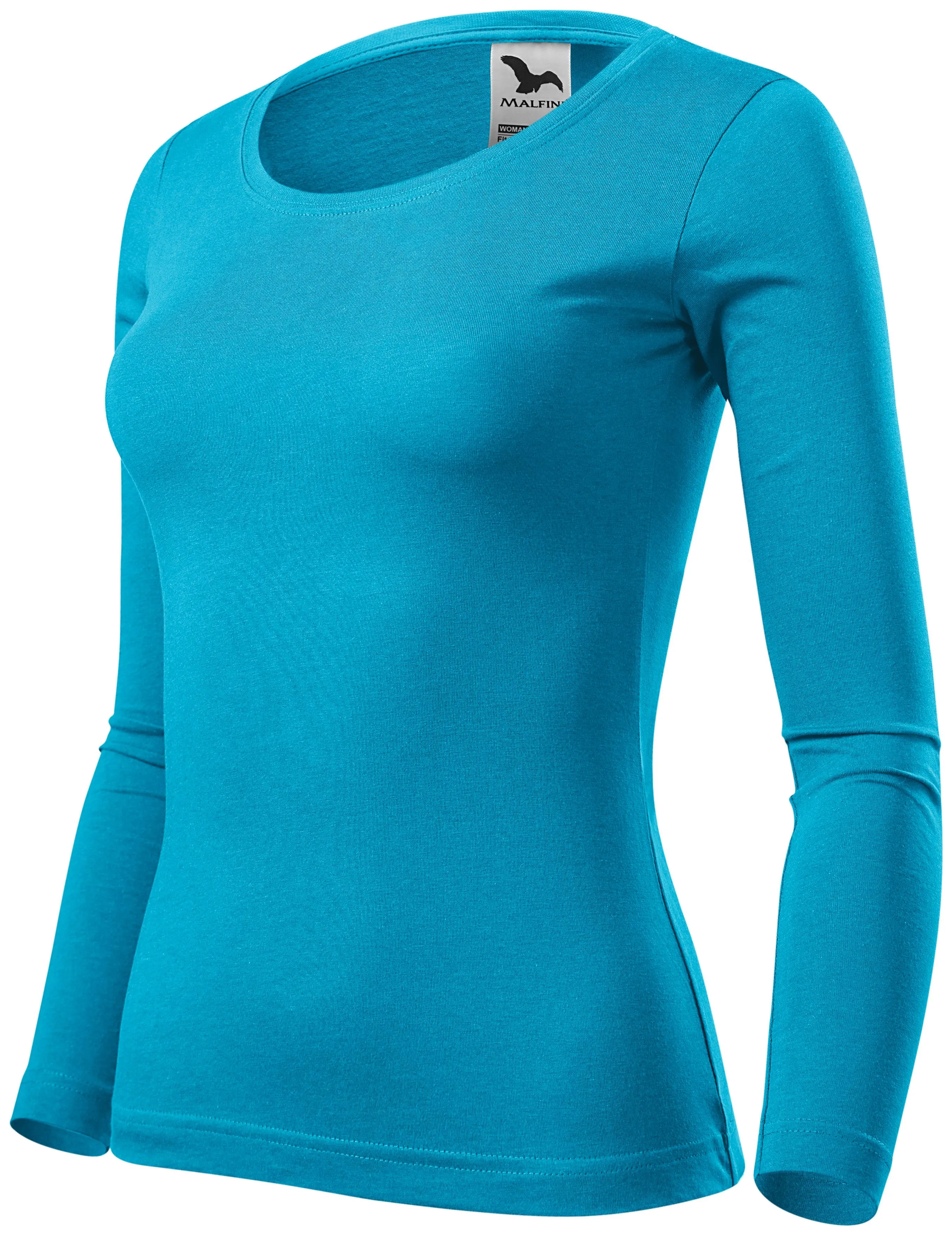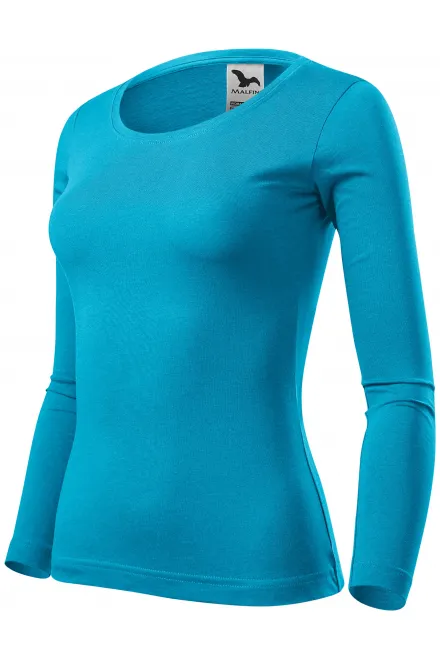 Sieviešu T-krekls ar garām piedurknēm, tirkīza, XS