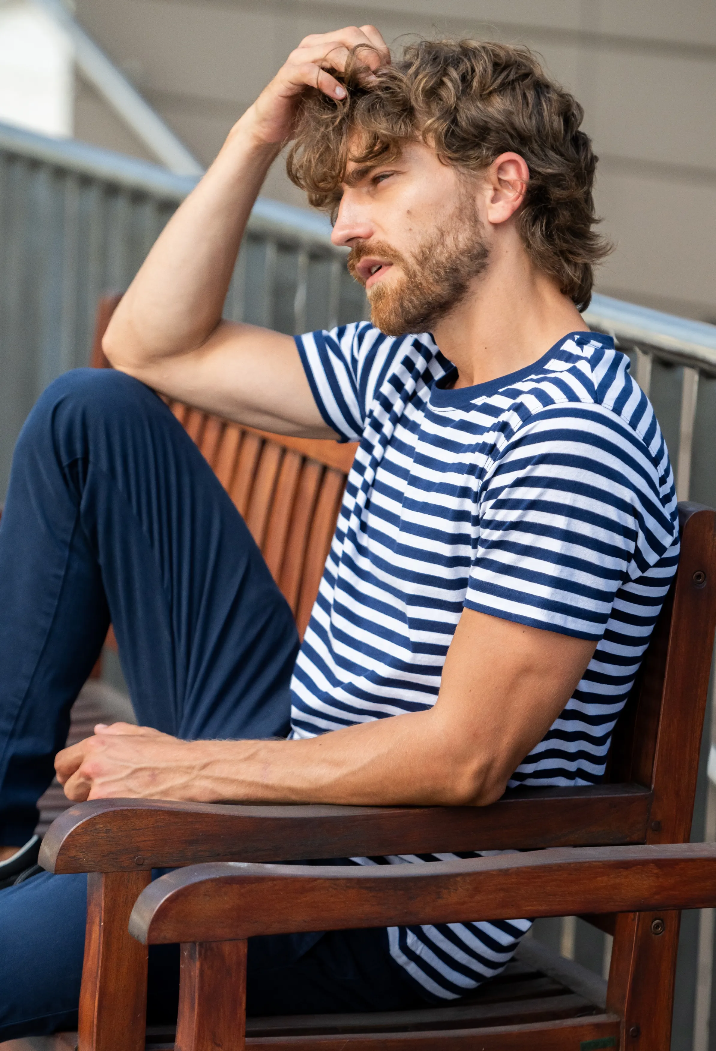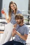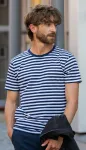 Ja meklējat kokvilnas vīriešu T-kreklu ar zilām un baltām svītrām, īpaši piemērotu ūdenim, jūs to tikko atradāt.